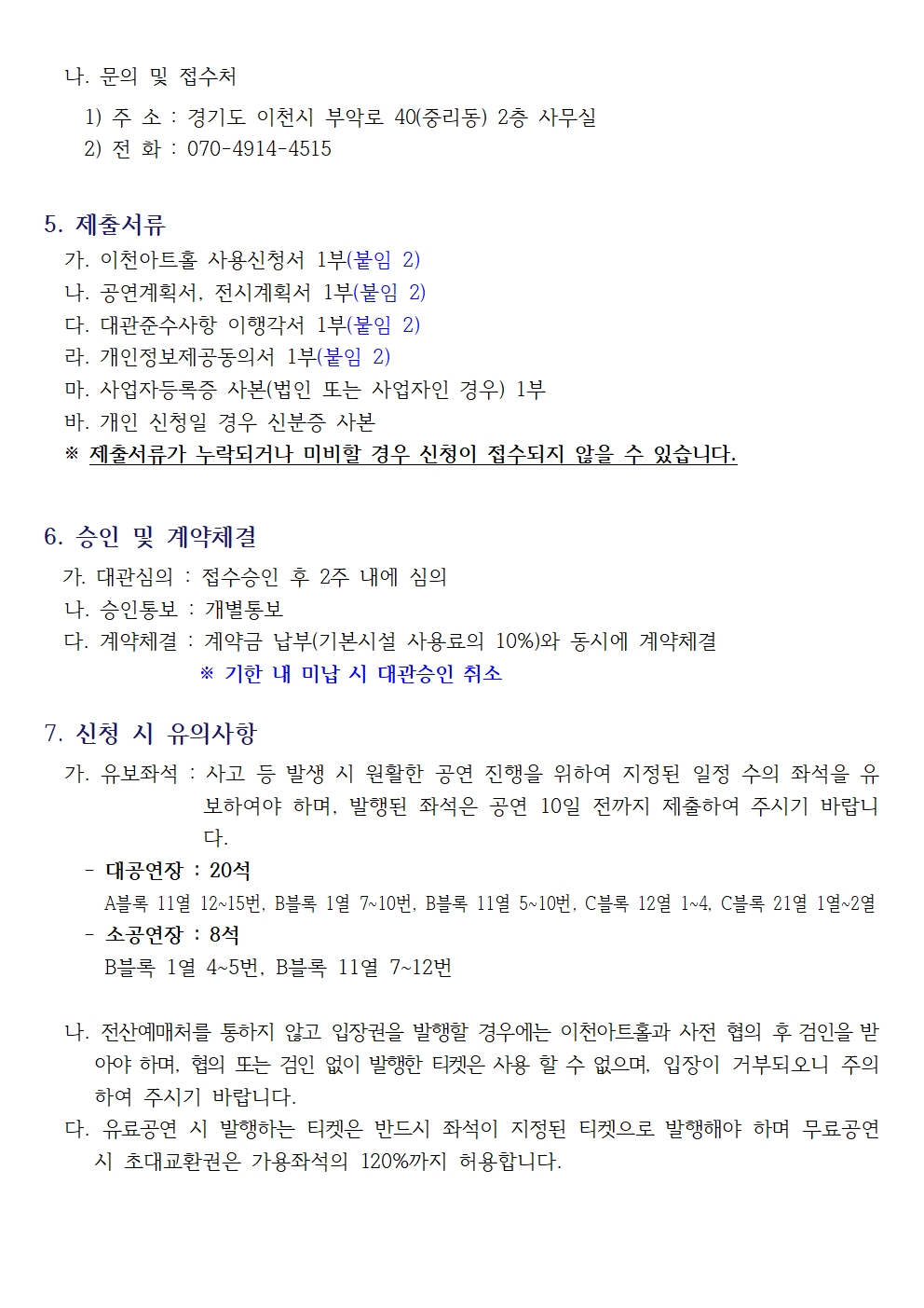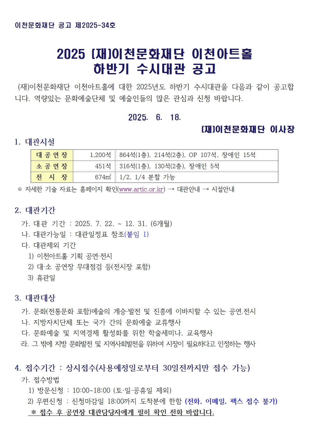 2025년 (재)이천문화재단 이천아트홀 하반기 수시대관 공고 (마감)