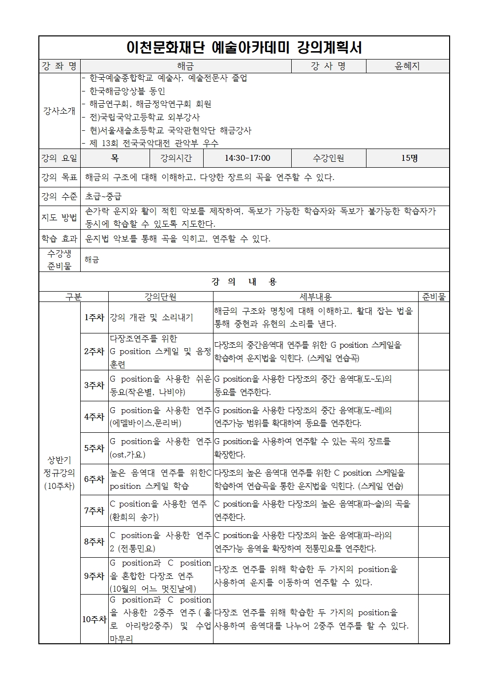 [정규 예술아카데미] 해금
