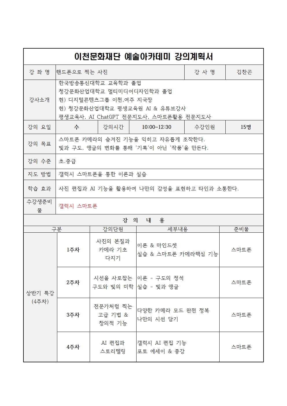 [특강 예술아카데미] 핸드폰으로 찍는 사진