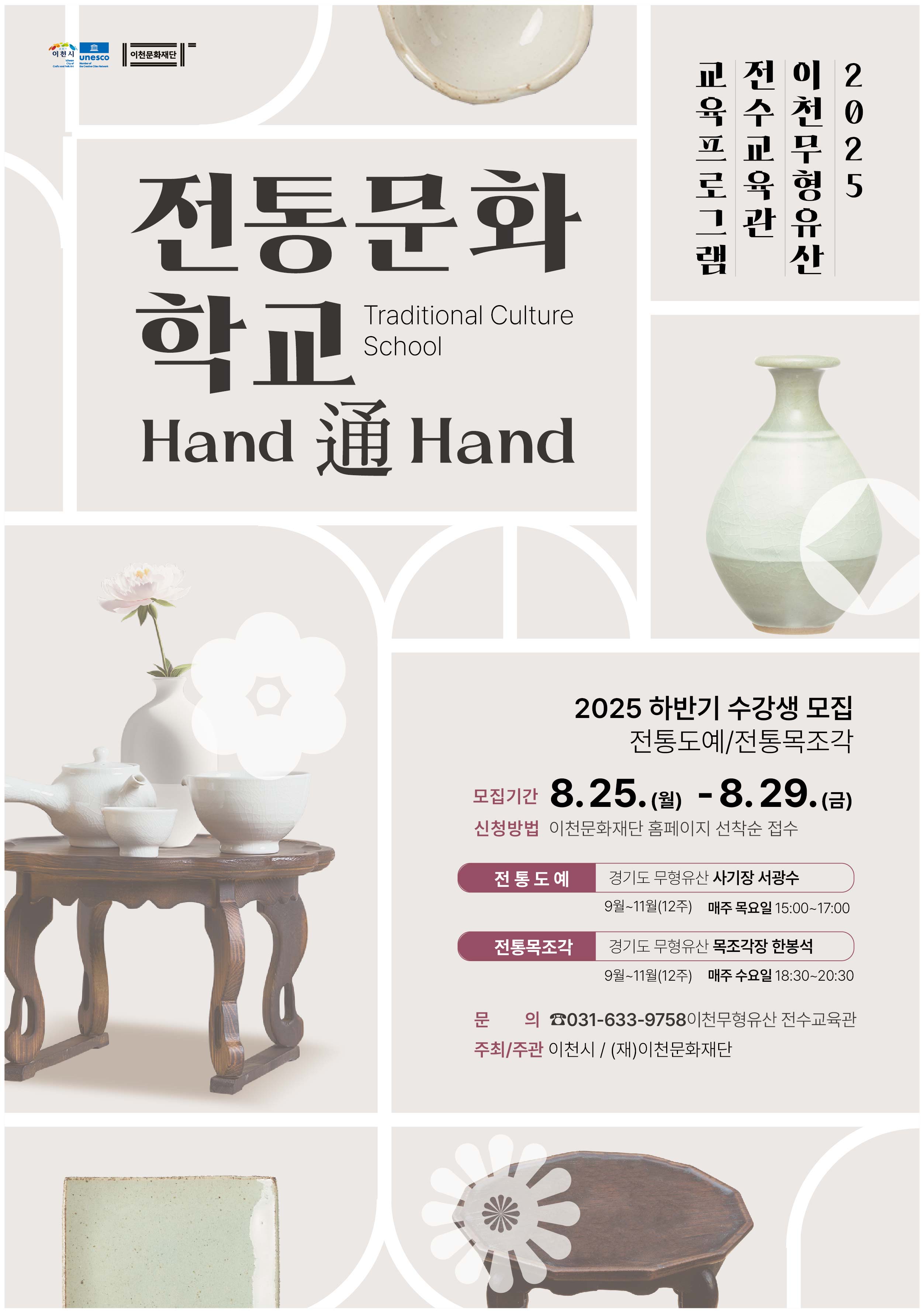 2025 이천무형유산 전수교육관 '전통문화 학교' 하반기 수강생 모집