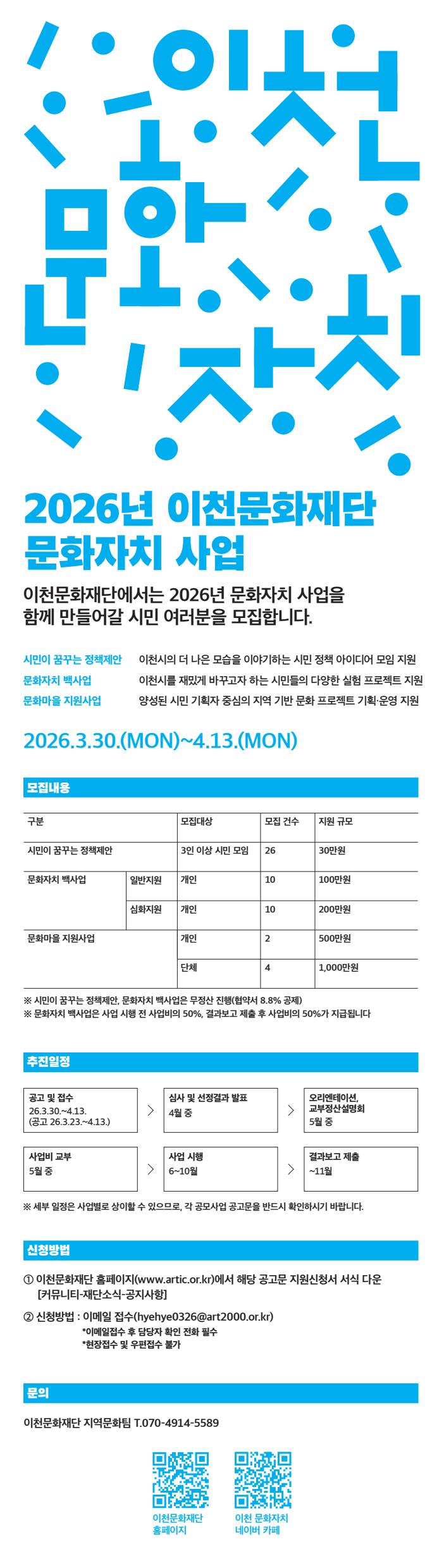 이천문화재단 홈페이지 '공지사항'에서 확인 가능합니다.
