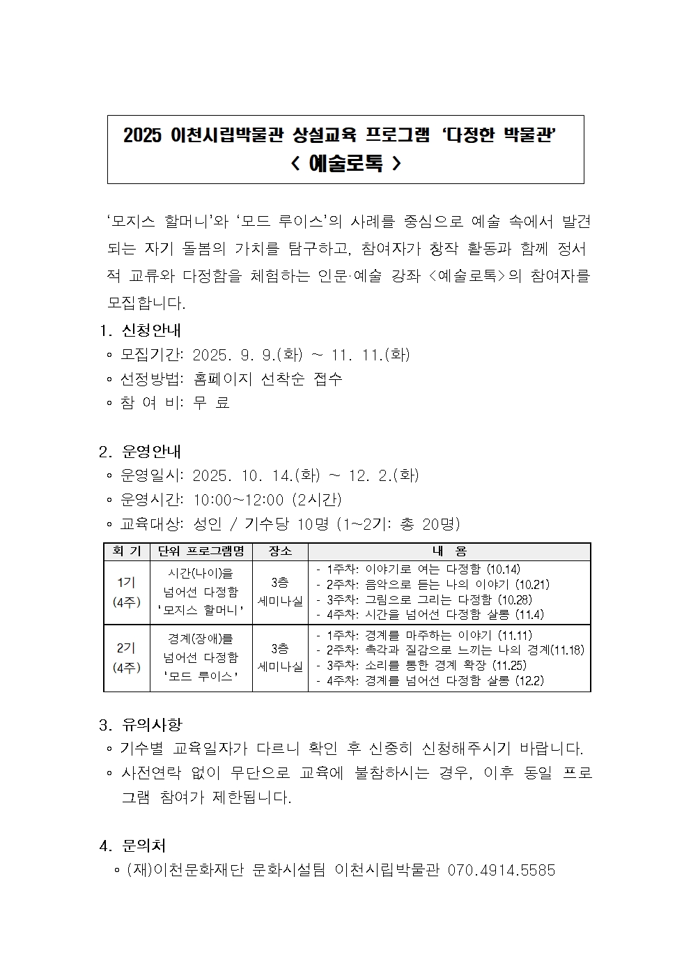 2025 이천시립박물관 '예술로톡' 2기 신청