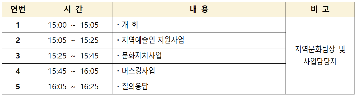내 용 : 지역예술인 지원사업, 문화자치사업, 버스킹 사업 상세내용 및 지원 방법 통합 안내