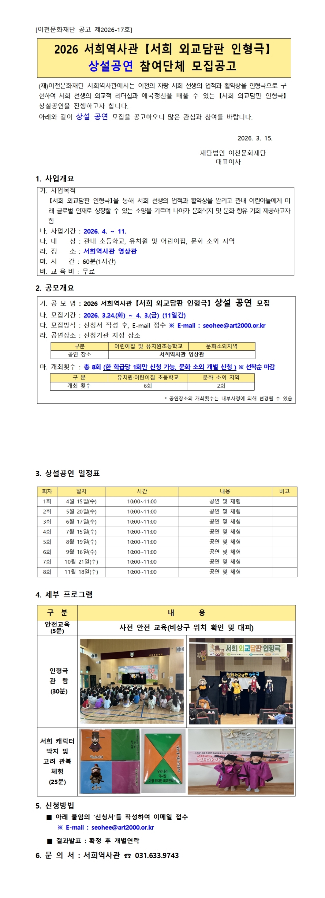 2026 [서희 외교 담판인형극] 상설 공연 참여 기관(단체) 모집 공고