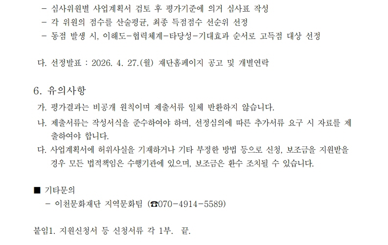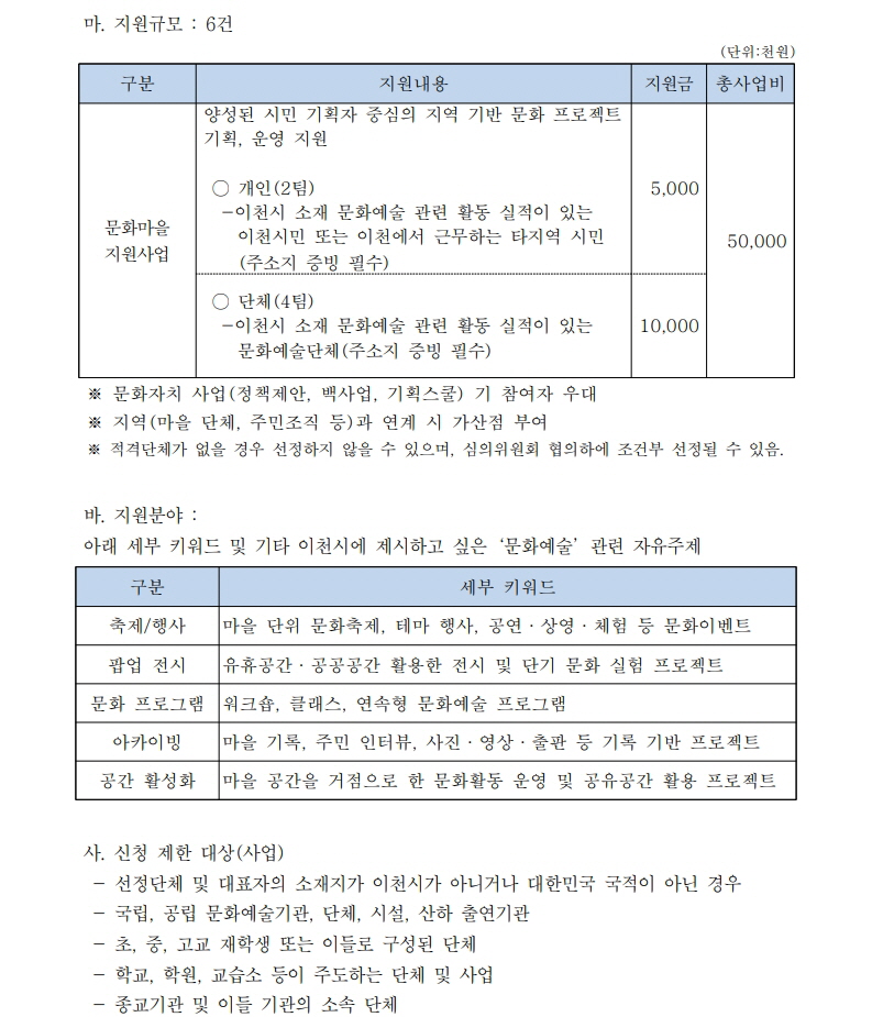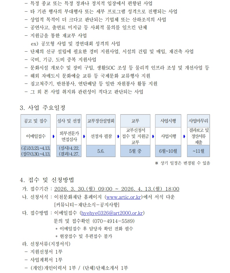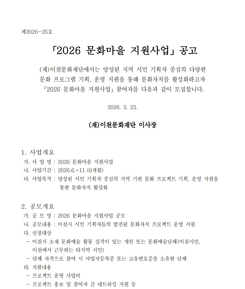 붙임2, 붙임3 '2026 문화마을 지원사업 지원신청서' 수정: 2026. 03. 25(수)