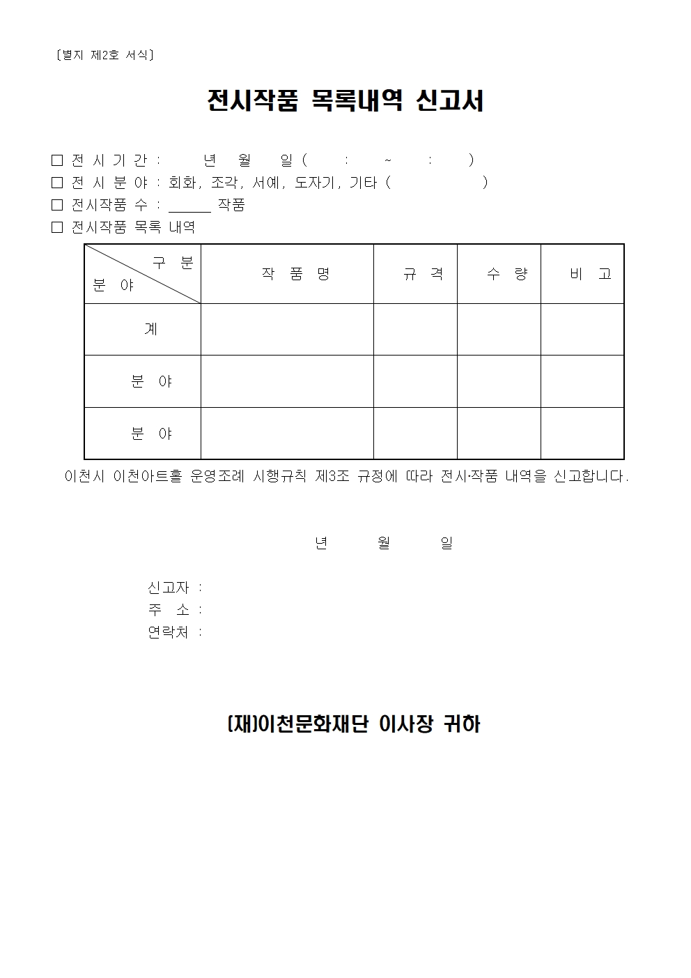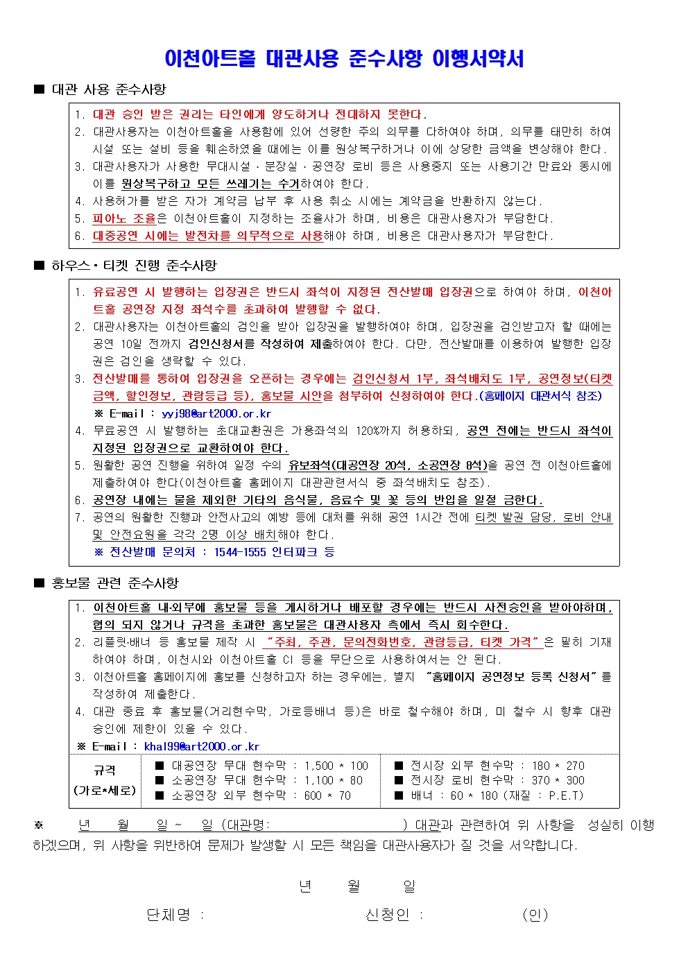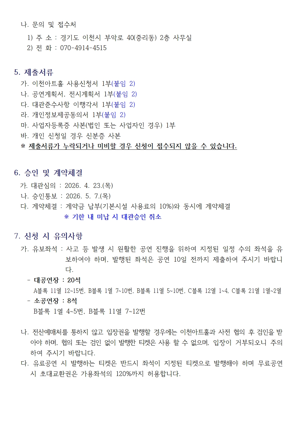 2026년 (재)이천문화재단 이천아트홀 하반기 정기대관 공고