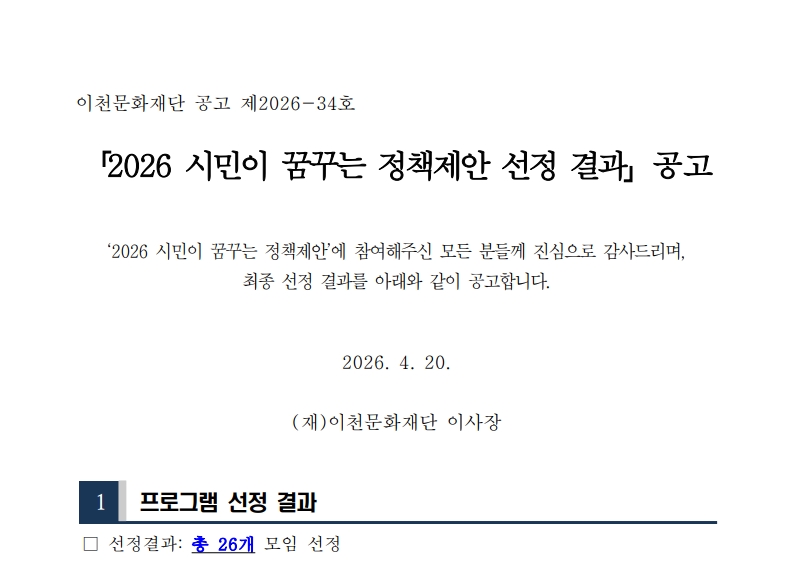 2026 정책제안 선정 결과 공고