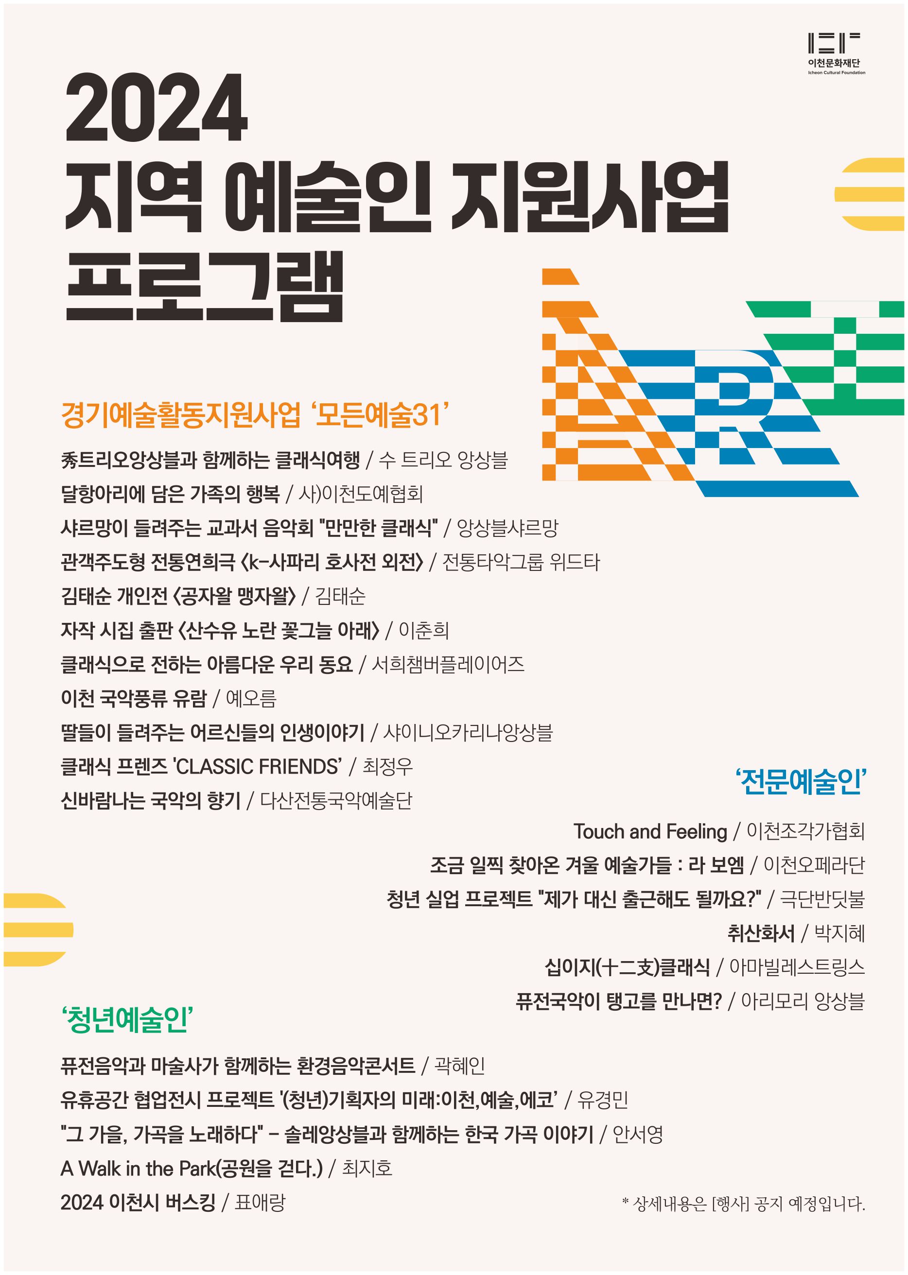 * 공연 일정 및 장소는 변경될 수 있습니다. 관람을 원하시는경우 사전 문의 바랍니다.