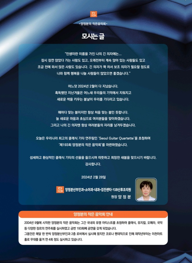 제 193회 양정분의 작은 음악회 '서울기타콰르텟 초청콘서트'