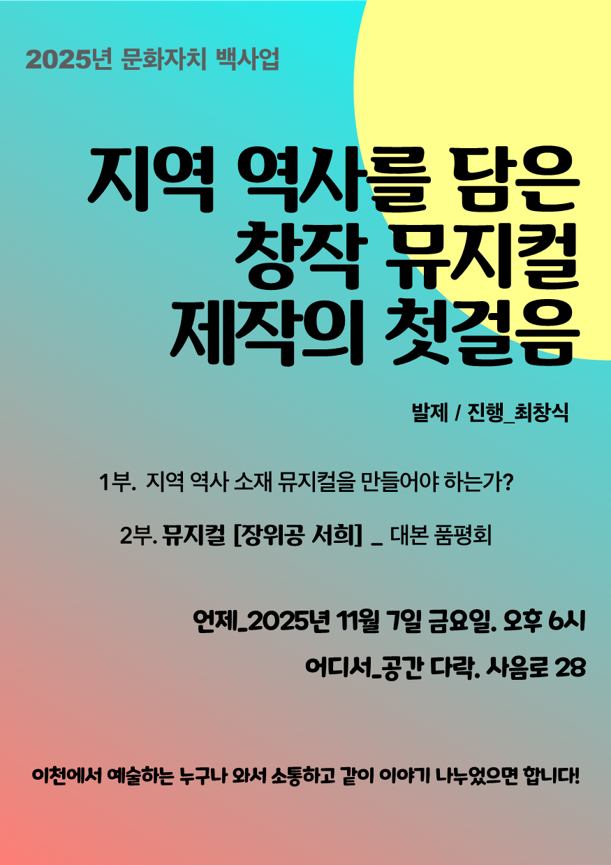 2025 문화자치 백사업: 지역 역사를 담은 창작 뮤지컬 제작의 첫걸음