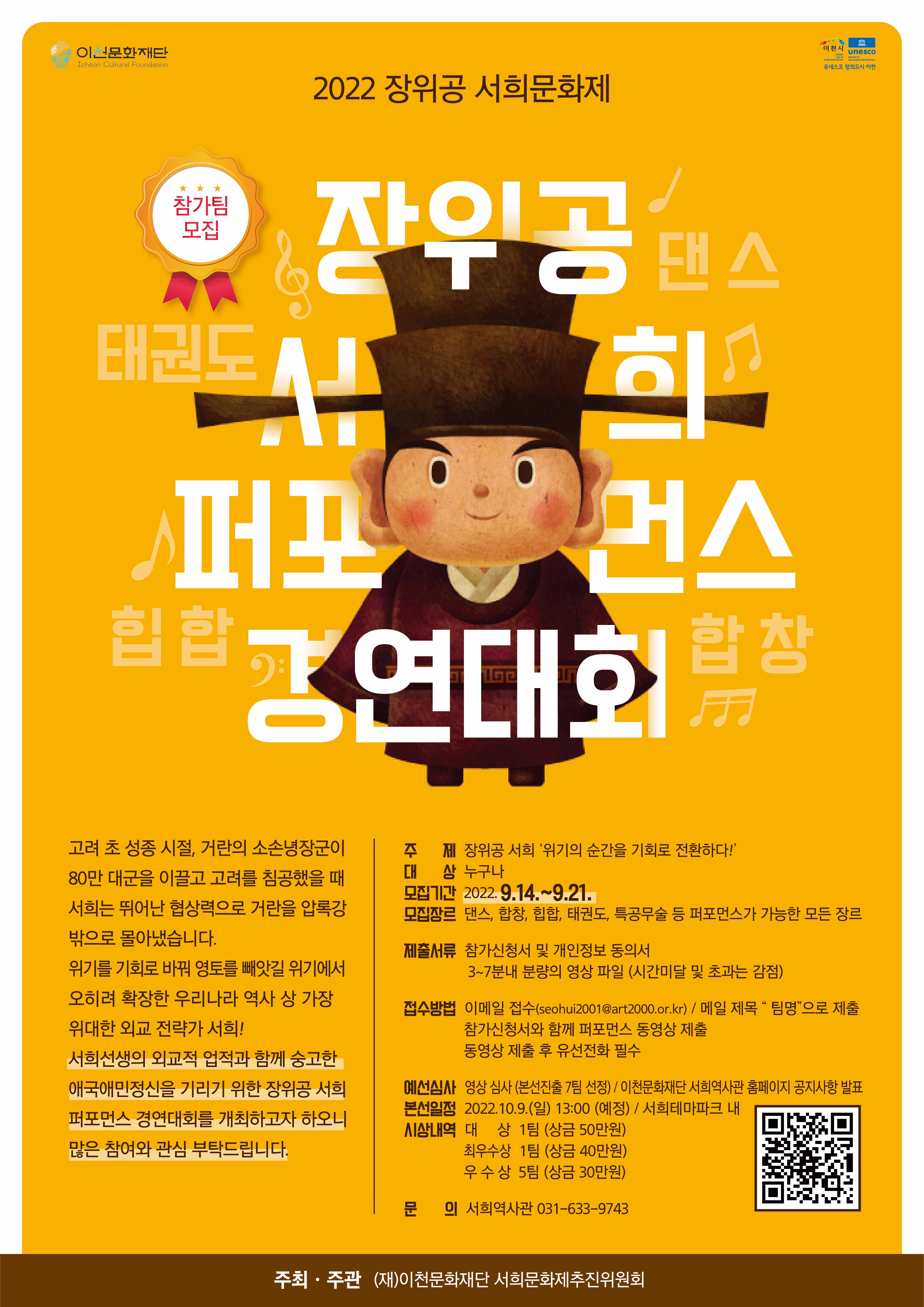 menu 전체메뉴 닫기 역사관 소개 소개 연혁 영정/연보 이용 안내 관람 안내 시설 안내 찾아오시는 길 행사 서희문화제 전국미술대회 및 백일장 추모제 자료실 공지사항 사적 및 기념물 관련 논문 및 서적 서희찬가 이모티콘