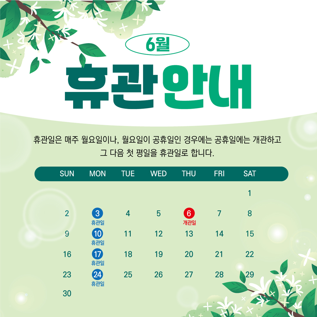 서희역사관 6월 휴관 안내