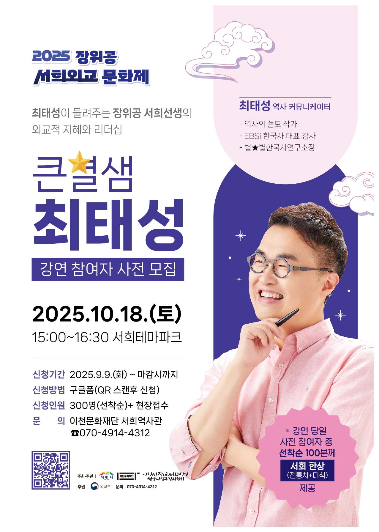 menu 전체메뉴 닫기 역사관 소개 소개 연혁 영정/연보 이용 안내 관람 안내 시설 안내 찾아오시는 길 행사 서희문화제 전국미술대회 및 백일장 추모제 자료실 공지사항 사적 및 기념물 관련 논문 및 서적 서희찬가 이모티콘